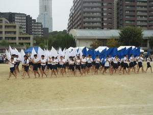 後半の1年生・2年生の観ていて自然と顔が綻んでしまう演技、走競技にも子どもたちは懸命に取り組み、6年生の演技中では雨が少し来ましたがそんなことはものともせず、集中を切らすことなく雨をも切り裂くような力強い演技を見せてくれました。(団体行動の様子を連続3枚でお送りします)
