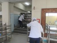・給食室と廊下には段差があるので毎回配膳員さんがカートから食器やおかずなど移し替えをしてくださっています。給食終了後は、配膳員さんだけでなく給食委員会の子どもたちも片づけてくれています。みなさんありがとうございます。