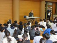 ●2月10日:3年生がNPO法人教科書点訳連絡会の監事 三上先生のお話を聞いてからアイマスク体験を行いました。