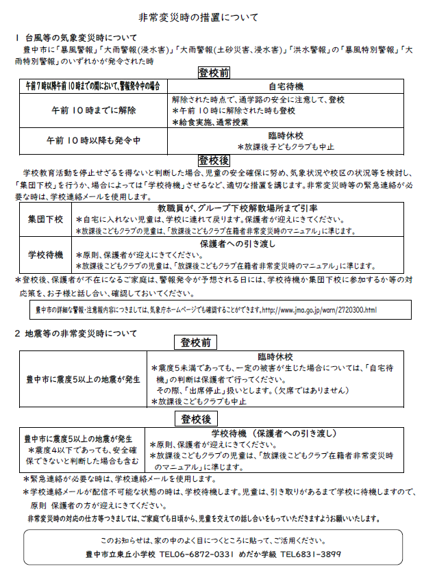 東丘小からのおたより