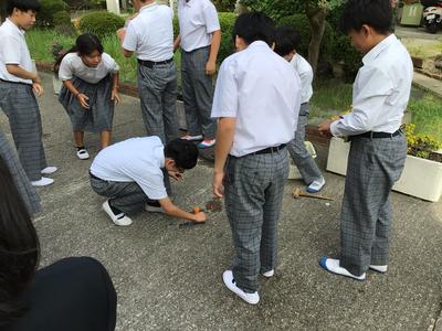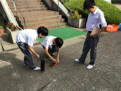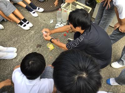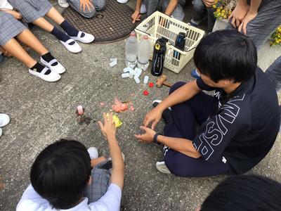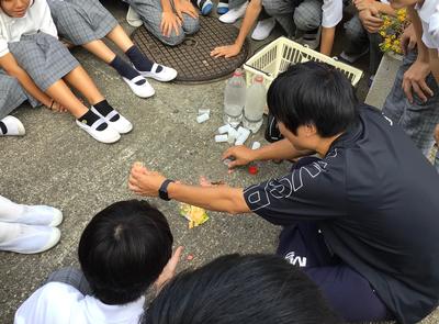 A先生が真ん中に座り込んで、怪しい液体と粉末を、、、笑