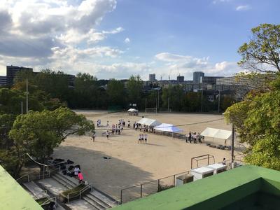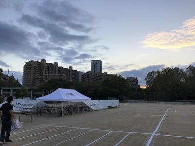 テントやライン引き、椅子や机など、準備が進んでいます。