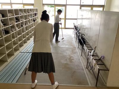 体育大会後なので下足室はかなり土が溜まっていた様子!