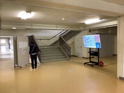 1階の受付では、案内のモニターを見ながら、自分の子に関係なく、