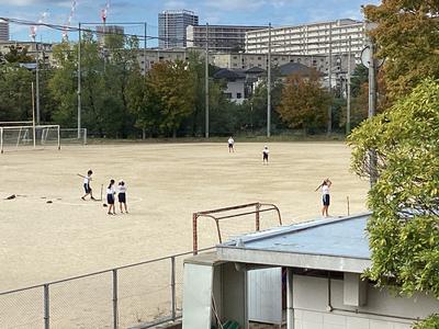 運動場では1年生がソフトボールの授業!