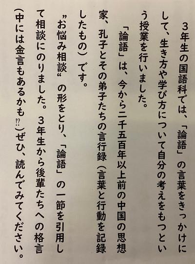 論語の説明をふまえて、悩みを抱える人へのメッセージを自分の言葉でまとめます。