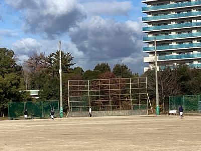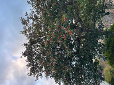 プール横ではクリスマスカラーのクロガネモチが赤い実を実らせています。