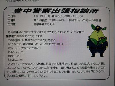 生徒指導A先生の発案で、普段なかなか関わることのない警察の方に来校していただき、気軽に相談できる時間を作ってみたんですね!