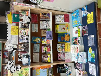 などなど八中図書委員会のオススメ本とそれを紹介する個性豊かなポップがずらりと並んでいます!