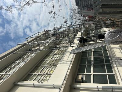 3階上の軒が剥落しているのを用務員Fさんが発見。
