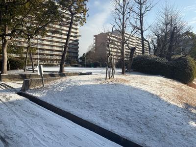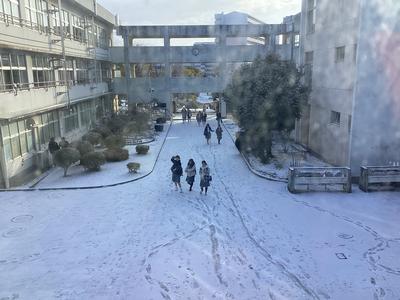 広い八中の運動場は真っ白!