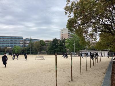 昼休みの運動場はたくさんの生徒が遊んでいました!