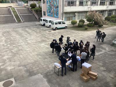 今朝は体育帽子の販売がありました。