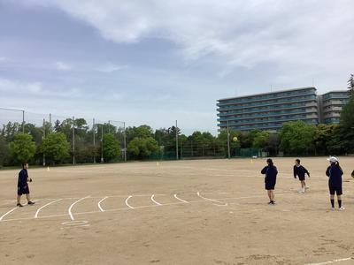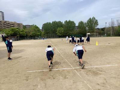 運動場では、50m走と