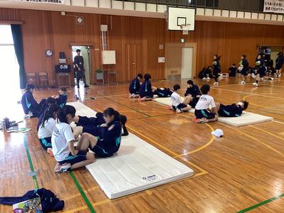 早く終わったグループは先輩たちがラジオ体操を教えていました!