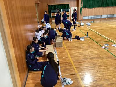 体育館では、反復横跳び、