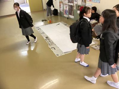 放課後、ドリーム広場の片隅で何やら大きな紙が広げられています。