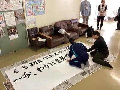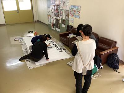 今日は決まったスローガンを掲示用に大きな字で習字で書いていきます。