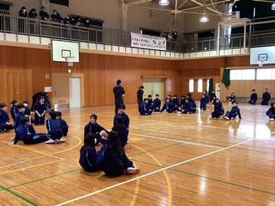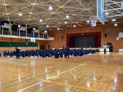 本当は運動場でやる予定だったのですが、夜に雨が降ったため体育館で実施!