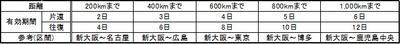 例)新大阪~広島:新大阪で往復乗車券購入、有効期限=6日間 (3日×2)。