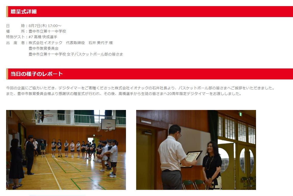 大阪エベッサ(株式会社イオナック)から20周年特別記念、部活応援企画としてデジタイマーを寄付していただきました。