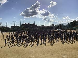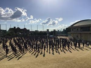 14時過ぎに、更衣を済ませて全学年が応援席に集合。