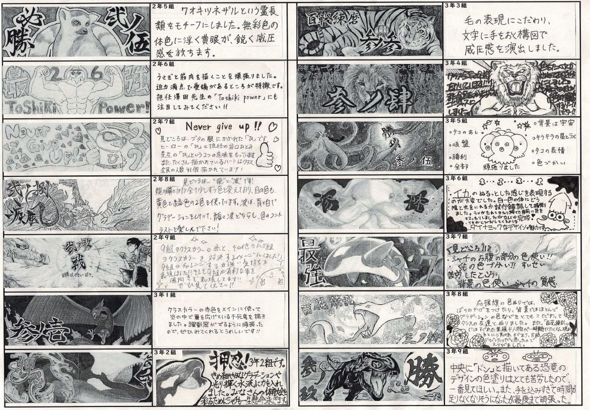 左にクラスで制作した旗のデザイン。