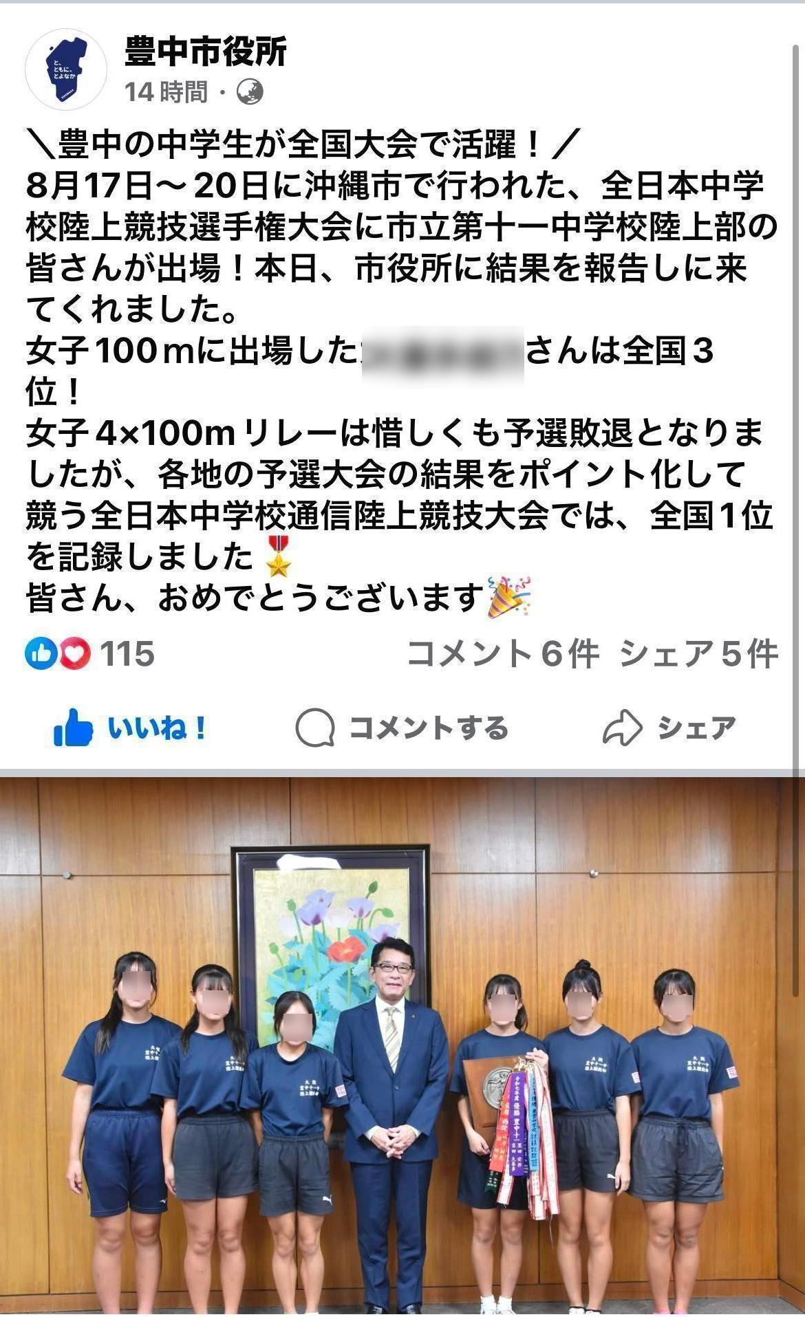 大阪大会で、女子4×100mリレーと女子100mで大阪大会を優勝し、