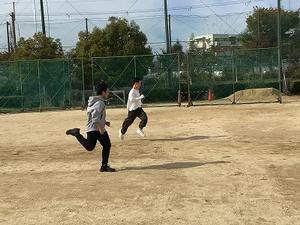 こちらは同じく男子。空を見上げてボールを追います。