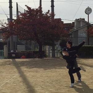 投げるフォームがカッコいい。野球少年?