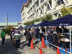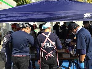 朝は7時30分から、長机の運搬、グルメストリートの出店準備、音響準備、バザーの準備などで、