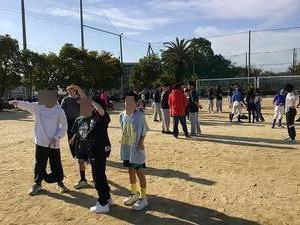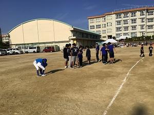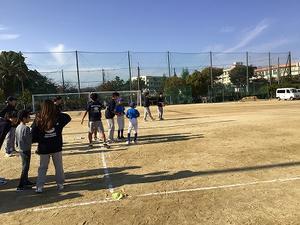 アメフト部の高校生(豊中高校)が子どもたちとタッチフットボール。