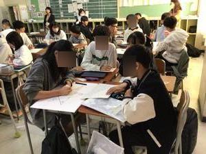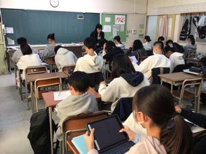 生徒主体の時間が多く(考える、話し合う、発表する)、穏やかな雰囲気で生徒同士が交流しあう場面がたくさんあり、