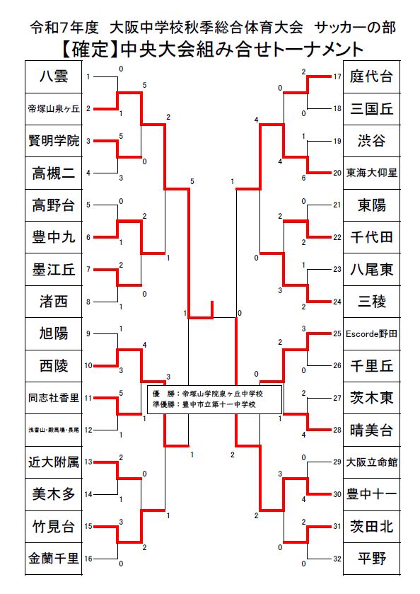 トーナメントを見ると、大阪の各地区代表のみの32チームが出場。