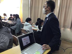 2年生の各教室に、大阪取引所から2名の講師の方に来ていただきました。