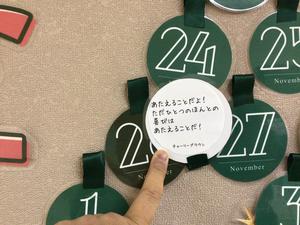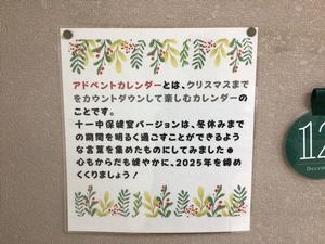 12/2 アドベントカレンダー(もうすぐクリスマス)保健室の前で