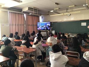 教室移動後は、生徒会と各クラブが作った紹介ビデオを鑑賞。