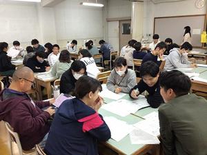 2クラスの公開授業が終わった後は、先生方の勉強会です。
