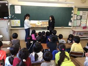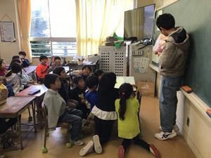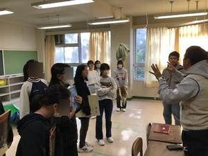 有志の11中生9名が少路小へ(小学1年生の読み聞かせ)