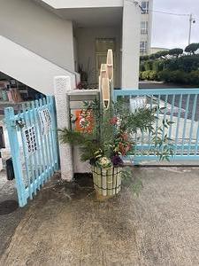 今日の朝、北門で挨拶をしていたら、門松を見て生徒から驚きの声が・・・