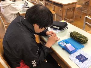 こちらは英語の授業、真剣にノート記入しています。
