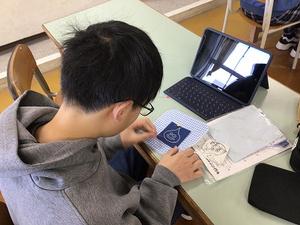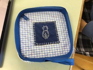 被服室で刺しゅうの実習。