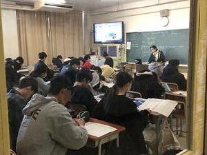 テレビ画面や黒板を参考に作業を進めています。