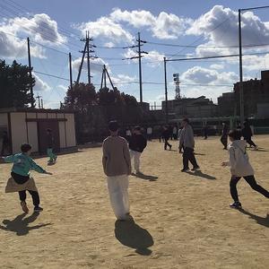 円になり、ひたすら来たボールをレシーブしてつなぐ。