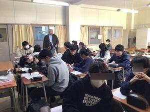 座席が足りないので、隣の教室から持ってきて座っています。(懐かしい感じ・・)