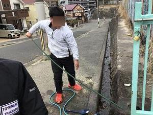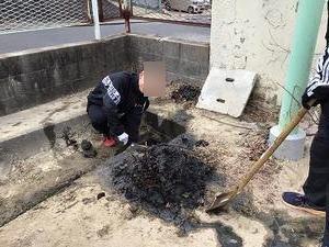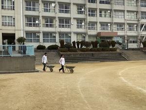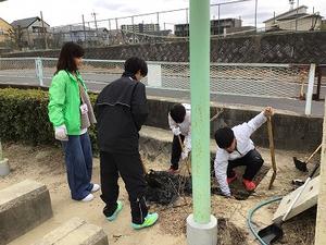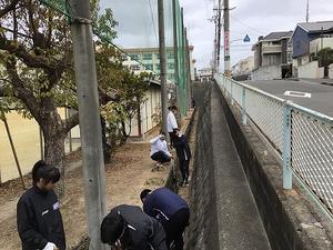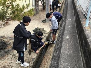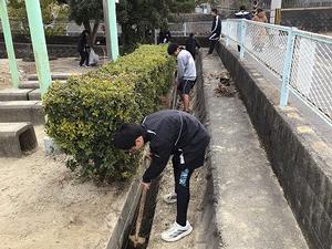 陸上部は、校内でPTAの方々と一緒に、側溝の泥さらい、草抜きをしてもらいます。