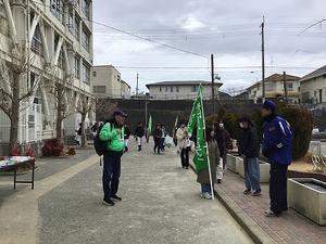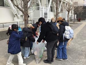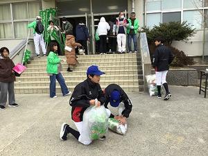 金平会長からの説明が終わると、ゴミ袋を持って、学校を出発。