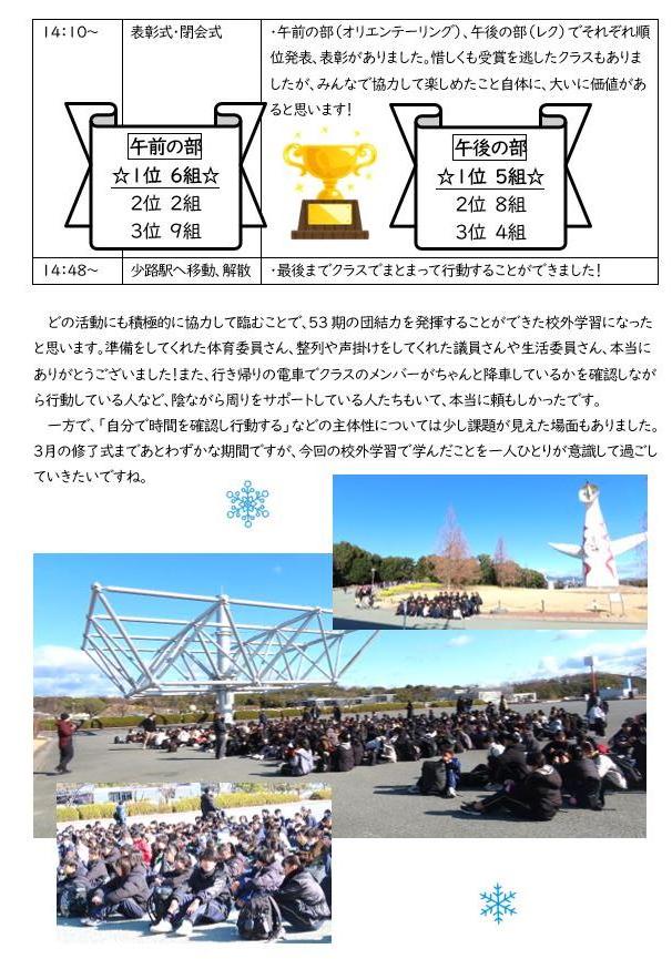 1/30(金) 学年だよりから(2/6 発行)