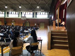 ずっとリモートで行っていた生徒会選挙が体育館で開催されました
