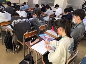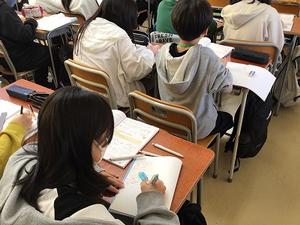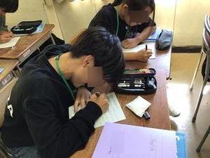 板書を一生懸命書き写しています